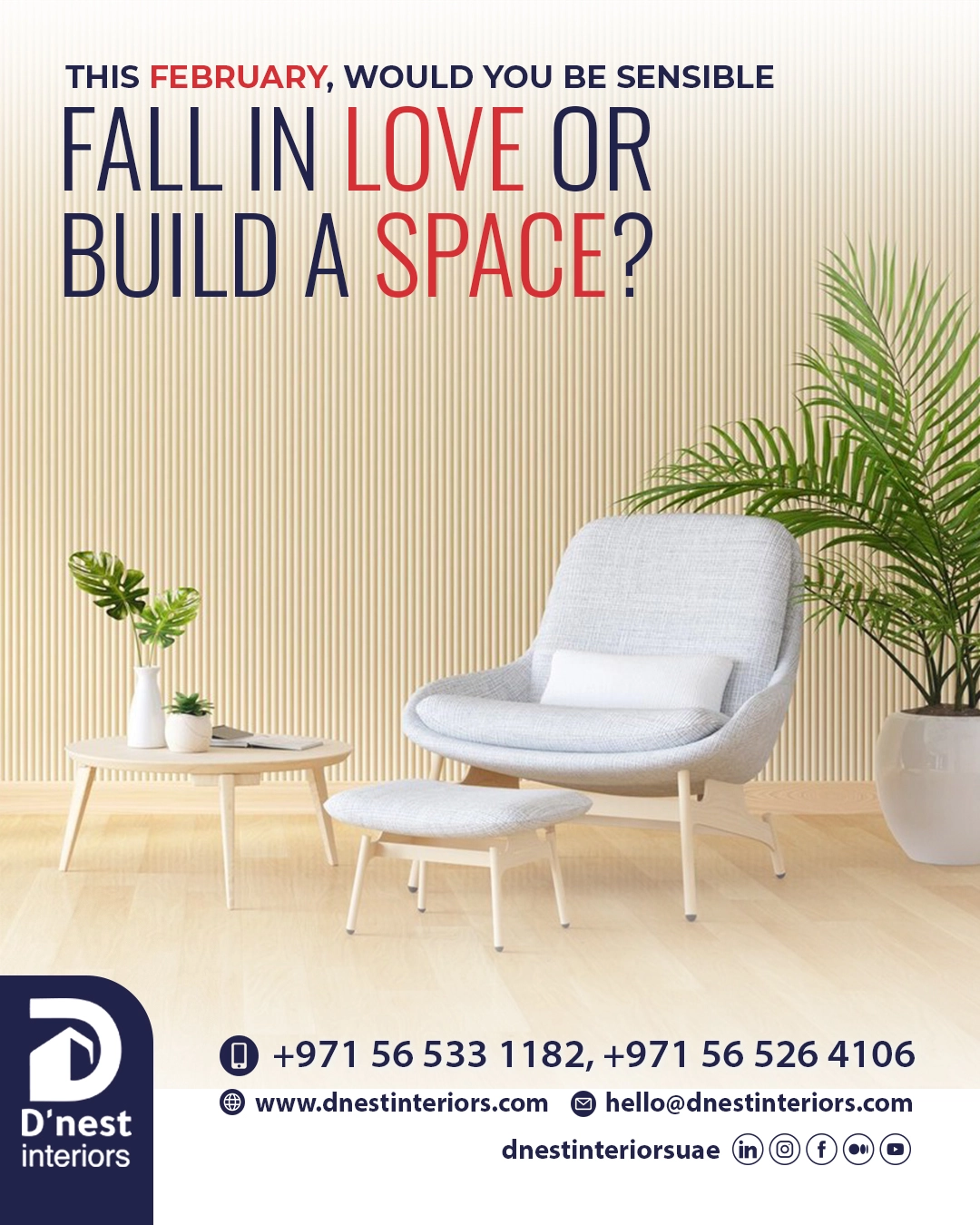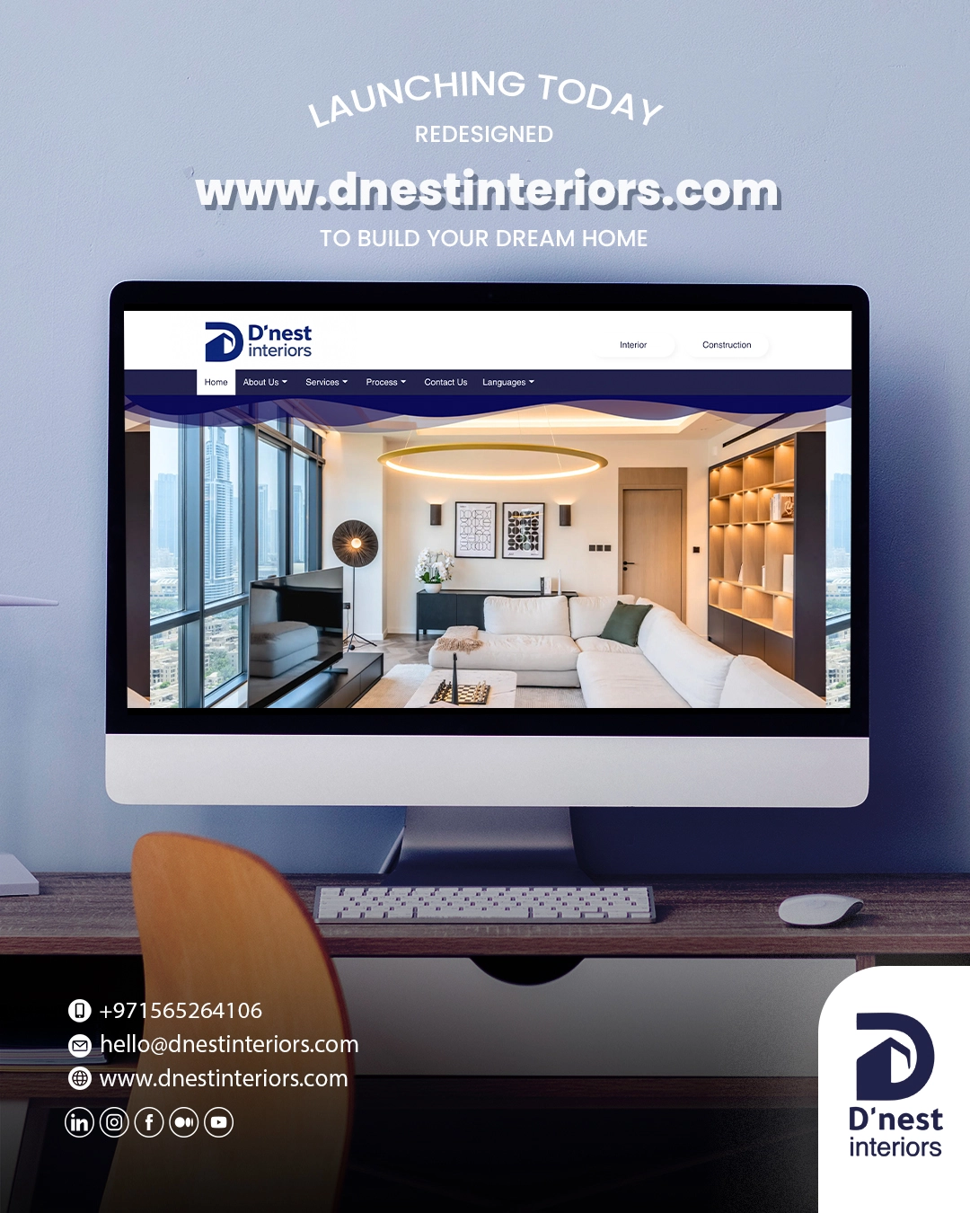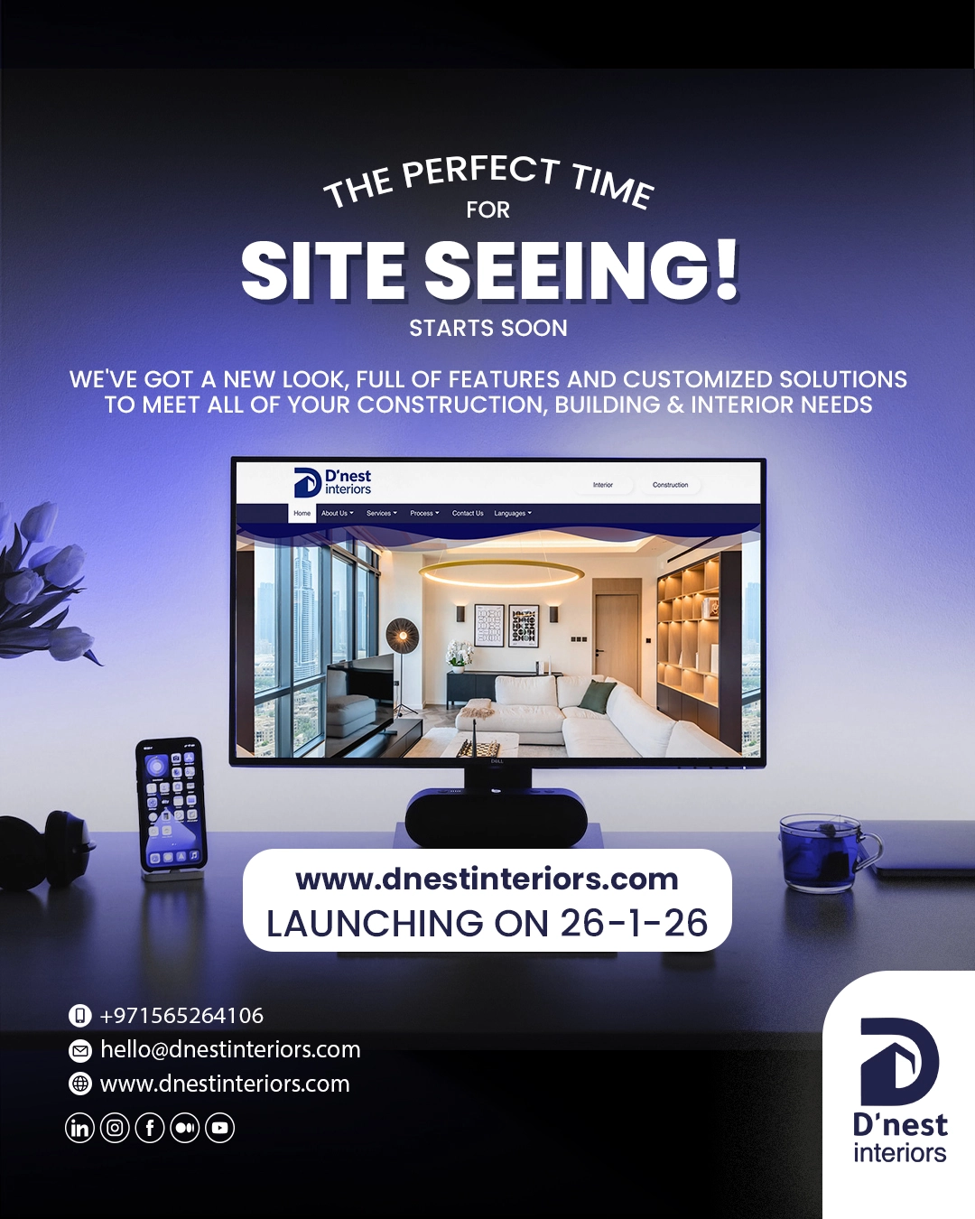 D Nest Interiors is a UAE-based design and construction studio working across Dubai, Sharjah, and all Emirates. We specialise in interior design, fit-out, and construction coordination, delivering spaces that function as intelligently as they look ; residential, commercial, and specialised environments handled with technical precision.